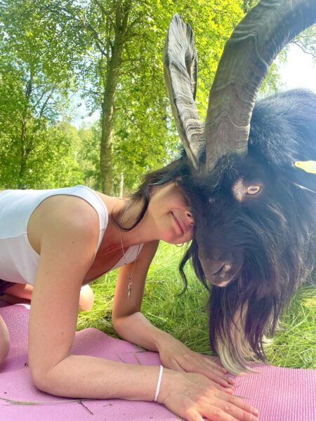 Karin Petterson kommer till oss och håller i getyoga. ”Eftersom jag är galet glad i getter!”