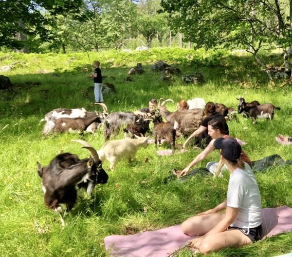 Efter passet finns gott om tid att stanna i hagen gosa, njuta eller kanske ta en selfie med en get.